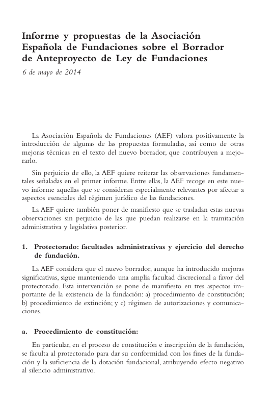 Informe y propuestas de la Asociación Española de Fundaciones sobre el Borrador de Anteproyecto de Ley de Fundaciones (Mayo 2014)