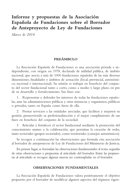 Informe y propuestas de la Asociación Española de Fundaciones sobre el Borrador de Anteproyecto de Ley de Fundaciones